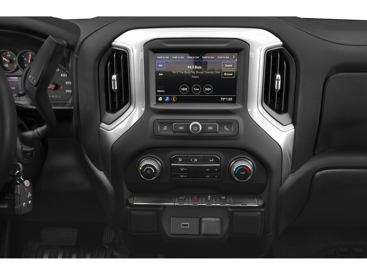 - Audio system, Chevrolet Infotainment 3 system 7" diagonal color touchscreen, AM/FM stereo. Additional features for compatible phones include: Bluetooth® audio streaming for 2 active devices, voice command pass-through to phone, wired Apple CarPlay and Android Auto capable.